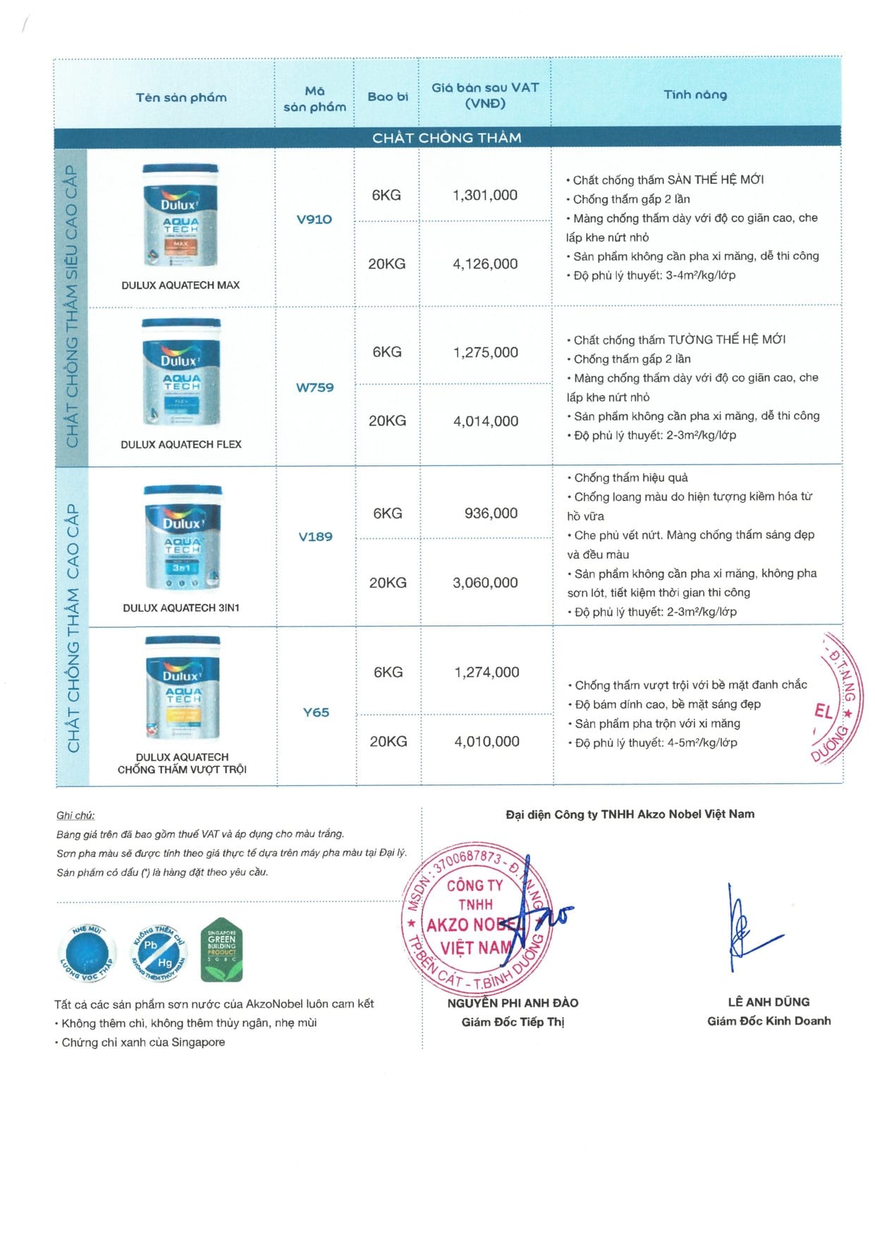 Giá sơn Dulux mới nhất có hiệu lực từ ngày 01/07/2025. Là bảng giá niêm yết chính thức của hãng Akzonobel (nhà sản xuất sơn Dulux). Phân phối Sơn Linh Dương là đại lý ủy quyền chính thức của hãng. Trân trọng gửi đến quý khách hàng bảng báo giá sơn Dulux chi tiết, bao gồm giá niêm yết và giá sau chiết khấu. Nhằm mang đến thông tin minh bạch, hỗ trợ tốt nhất trong việc lựa chọn sản phẩm.